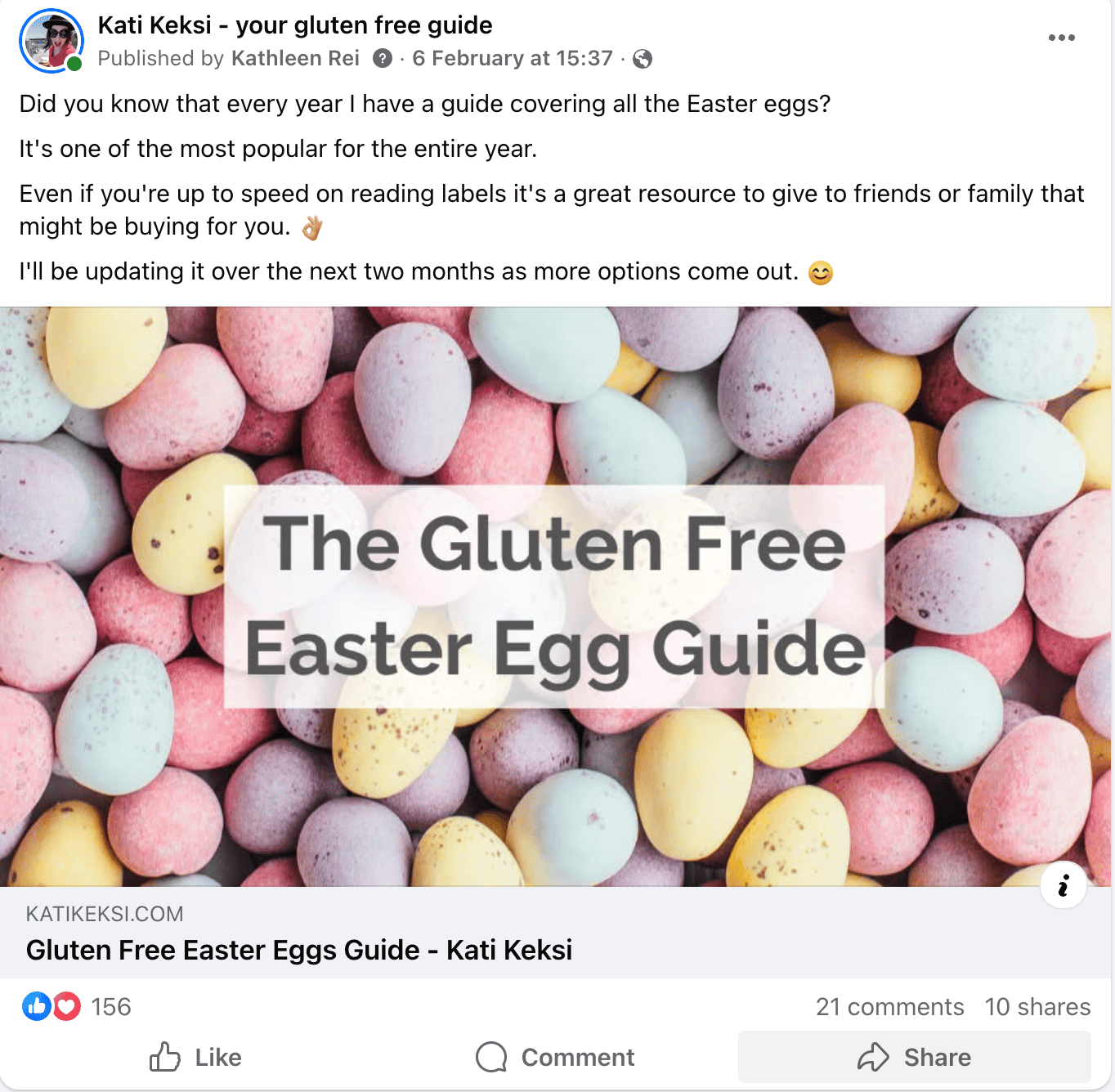 Welcome to the Kati Keksi monthly newsletter, bringing together the latest content from the Kati Keksi website as well as highlights from social media including Facebook and Instagram. Hey there, It's a nice change to be feeling calm and relaxed as I draft this newsletter. In some mail outs I've been really flustered and had a rant. I'm sure it makes for good reading though, and it's cathartic for me. 😅 Inching closer to Easter For me day to day, I am absolutely hurtling towards Easter. It's a busy time of year to get content out, along with a family birthday thrown in the holiday break as well. But what's inching? My Easter content. Namely my gluten free Easter egg guide. As I mentioned in last month's newsletter, so much of how social media works is out of your control. You put out your content and just hope it lands. The same can be said for a website. The algorithms that underpin search engines like Google are constantly evolving. Rankings (the order of links on the search results page) change all the time. So while most years my guide has been the second or third result for "gluten free Easter eggs" this year it's not there at all. Close but not quite enough Instead, it's a mix. An allergy safe store selling chocolate (Happy Tummies, an affiliate) a GF Easter eggs article from a company that isn't as thorough and a few of my old articles (somewhat good). I say somewhat good because last year's Easter egg guide just isn't up to date. It doesn't show all the new gluten free Easter egg options for 2026, and it doesn't acknowledge the options that are no longer available. Side note: I wrote this newsletter intro four days ago. The rankings have already changed since then. This is how in flux results can be. My articles sit at positions 1, 3, and 8. Of course, 8 is the current guide, still room to improve! Or a chance it'll disappear again. 😬 Sharing is caring As always, thank you to everyone who shares my posts or comments on pages recommending me. 🙏🏼 I'm not in every group but I see so many of them. The best photo I received last year was a community Facebook group for somewhere like Lilydale (outer Easter suburbs of Melbourne). Someone asked about Easter eggs for a coeliac friend and another person replied with my guide. A friend of mine saw it, took a screen grab and sent it to me. I'm Lilydale-famous! How to promote the guide The best way to promote is using the share function on Facebook and select a relevant group you're in (or a friend to send it to on Whatsapp or Messenger). I don't need a hundred people sharing my guide. I need one person per group who genuinely appreciated it to use that function and say, "hey, this was great." Because the worst comment I got last year from someone was, "Oh, I didn't realise you had an Easter guide. lol." 🫠🫠🫠 The message wasn't from the most tactful person ever but it still stung. I'd worked really hard to promote it and yet people still didn't know it even existed? Ooft. If you're keen to share the post your local group thank you! If you're not, no worries! But do share it with your family so that you definitely get a good GF chocolate on Easter Sunday. 👌 Here's a link to the guide that's best suited for sharing. Wow, that was a long story for me to say please help me out if you can. :) Coming up for Kati I am excited to say that this year I will actually take a holiday. I've got two short trips booked so far. One for March and one for April. I'm looking forward to trying out some new food venues and revisiting some familiar ones. With any luck I'll also meet up with some other GF foodies and friends at the same time. If you're wondering where, keep an eye on my Instagram stories. I'll be canvassing for recommendations over the next week or so. Kati x P.s. Does anyone use Reddit? There's a gluten free subreddit for Australia but it's super quiet. I'm not the mod, but I am (almost) the only one posting. Come say hi! Or upvote or whatever they do there. 😁 Latest posts on katikeksi.comNot up to date with the website? Here's what I've been talking about this month. RaiCin, raisin cinnamon spreadWhat if you could turn any bread into raisin toast? That's exactly what RaiCin can do. Check out my review and several other days this spread works (especially with cheese).